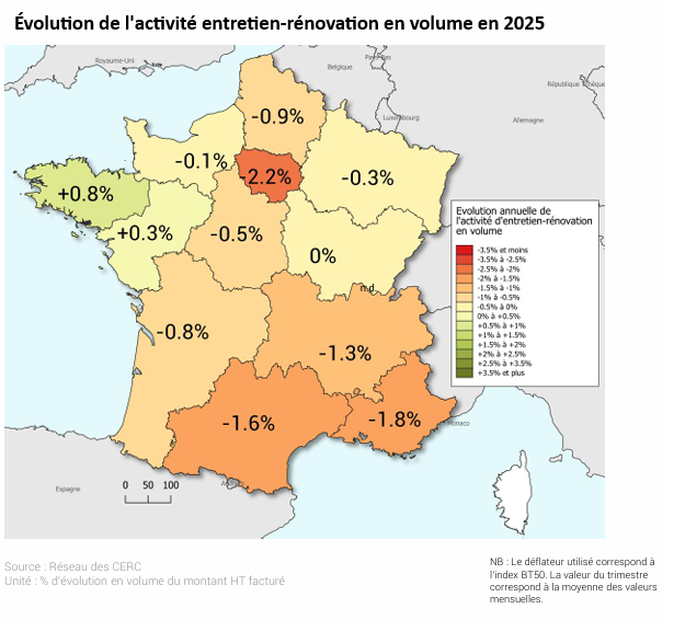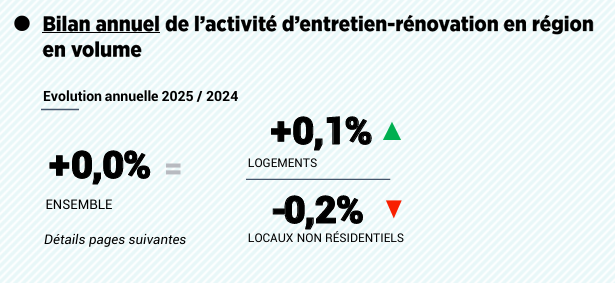Sur le marché de l’entretien-rénovation, le volume d’activité des entreprises régionales a augmenté de 1,7% au 3ème trimestre 2024 par rapport au 3ème trimestre 2023, soit plus qu’au niveau national (+0,8%).